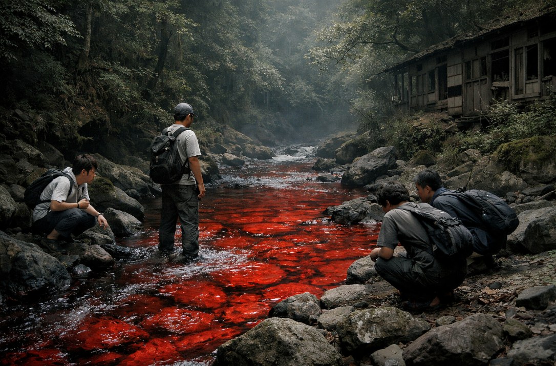 異様なほど、均一に、上流まで続く赤だった。土の色ではない。苔でもない。濡れているせいでもなかった。