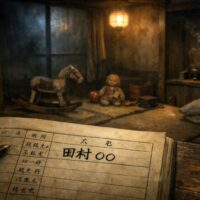 沈むのに水の抵抗を感じなかった。胸の内側だけがひどく冷え、視界が細長い線に変わり、その線の向こうで誰かがこちらを覗き込んでいる影があった。爺さんなのか、鳥居の影そのものなのか分からない。ただ「顔がない」ことだけが分かった。顔がないのに、見られている。