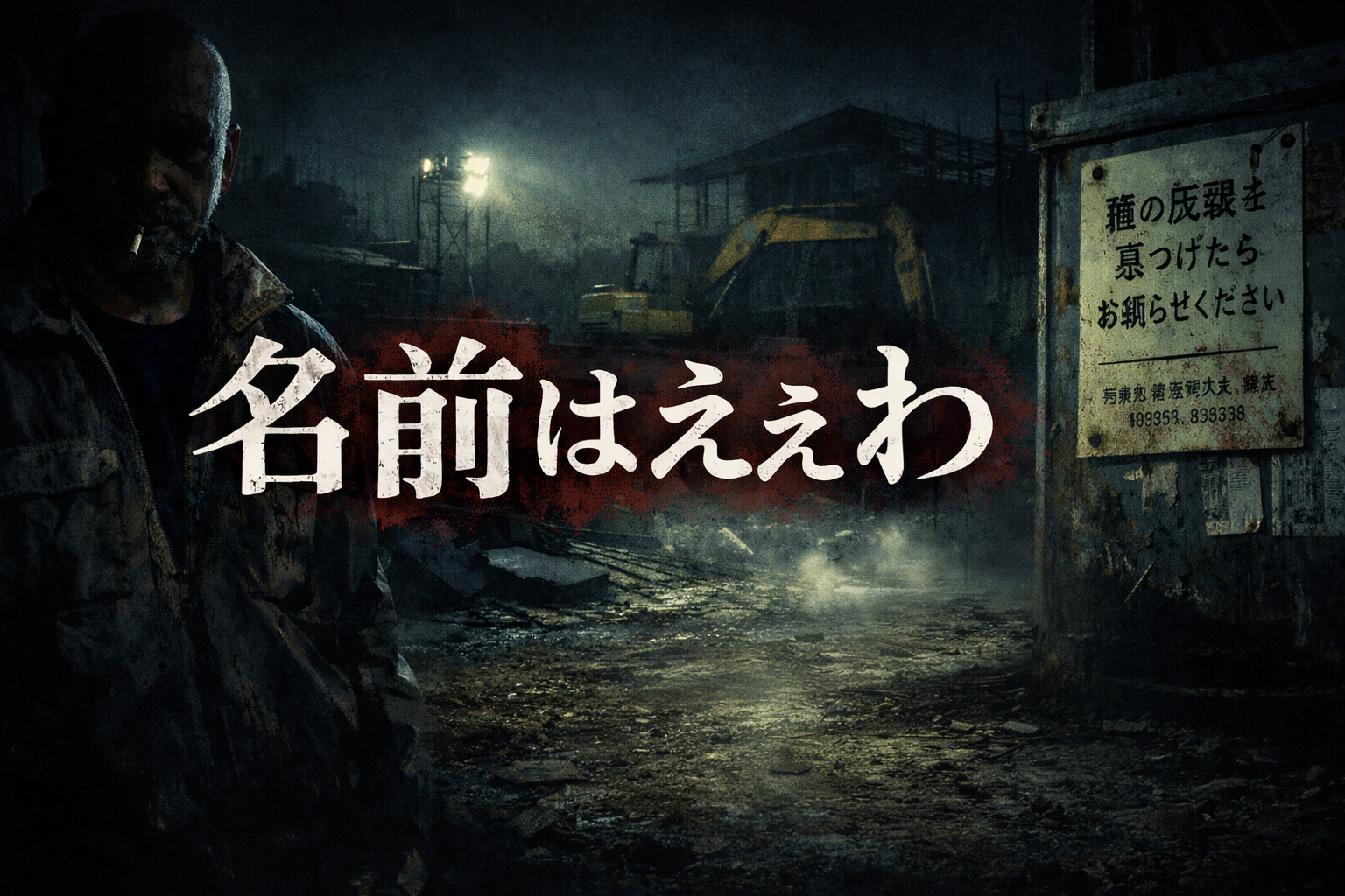 初日の朝、現場事務所で作業員が集められた。そこで現場監督だという京谷という男に会った。坊主頭で顎髭、目の焦点が合っていない。紹介されると、俺の顔も見ずに言った。