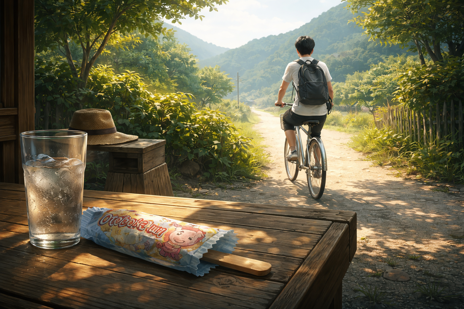 庭の隅には、ぬるく溶けたおとぼけくんの棒が、今も落ちている。