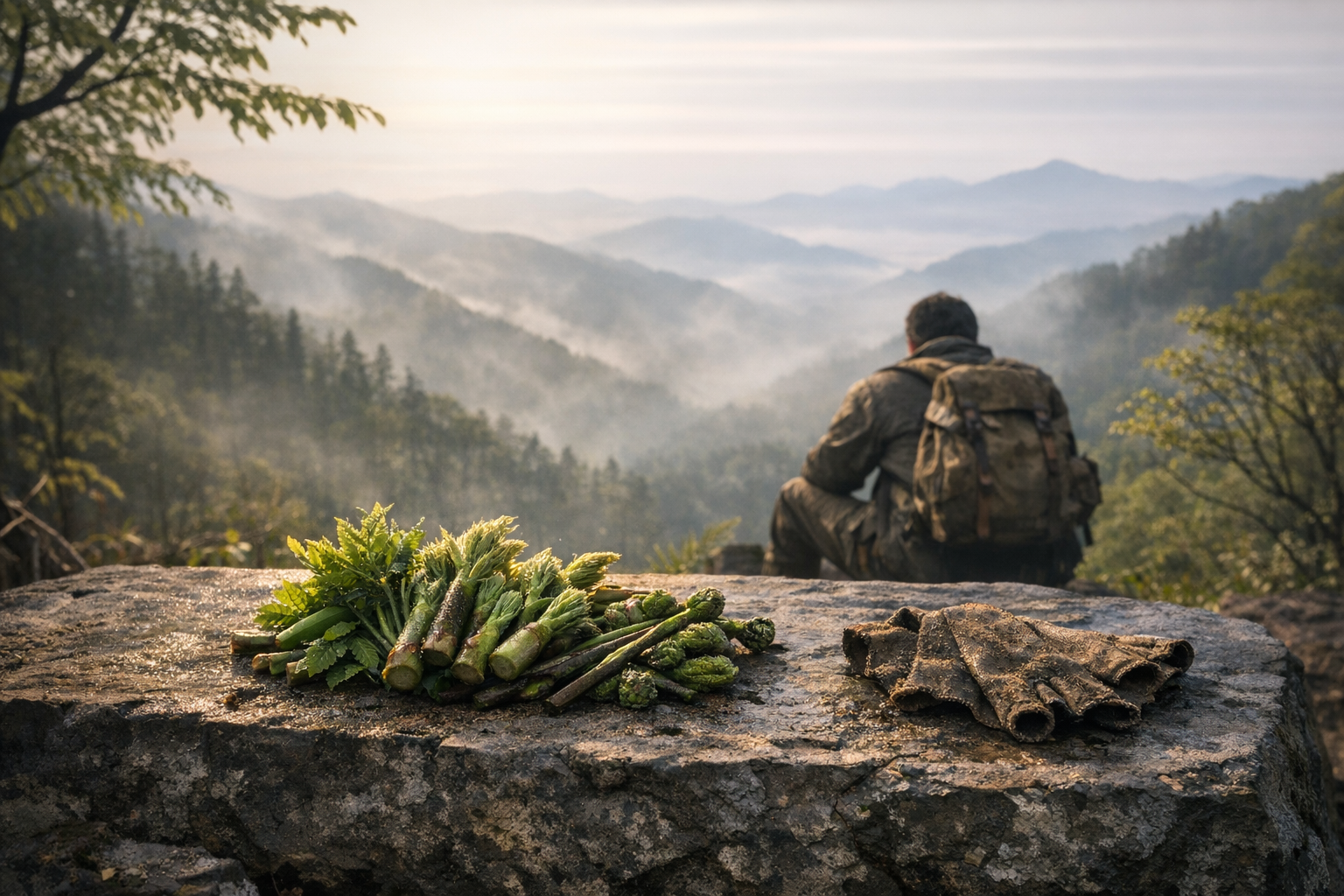 帰宅後、山菜を仕分けして気づいた。量が多い。明らかに多い。山頂で半分を置いてきたはずなのに、減っていない。山頂で籠を覗いた時の記憶だけが、曖昧だった。