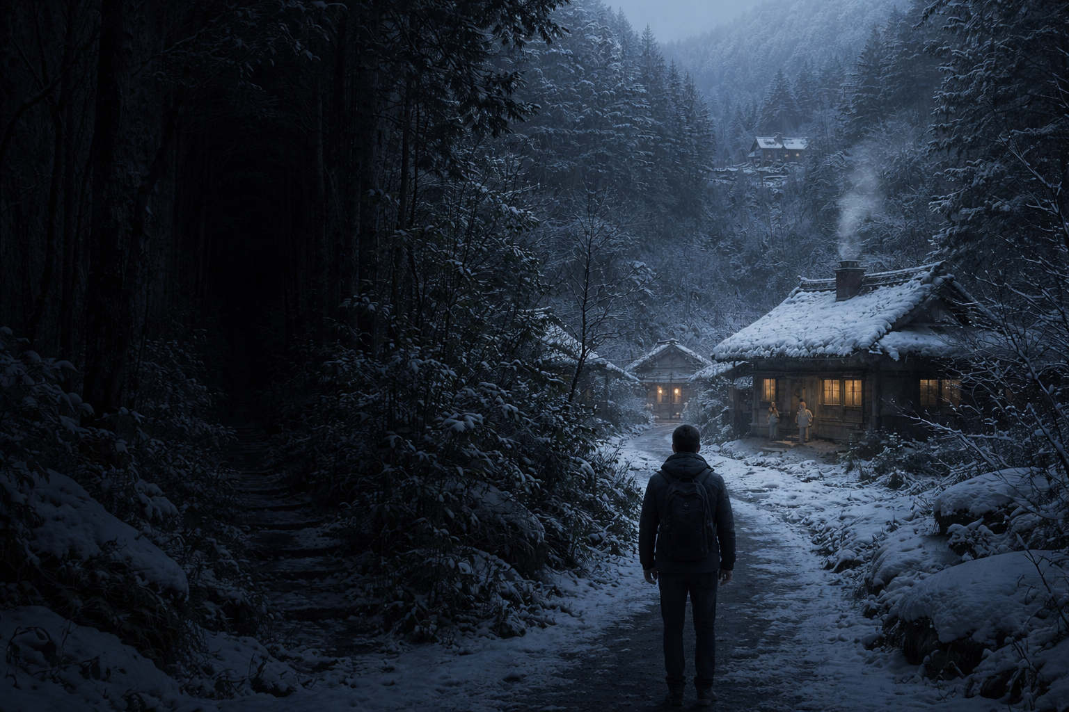 帰り際、ふと気になって、あの脇道の方向を振り返った。雪に覆われて何も見えなかったが、確かに、こちらを向いている気配があった。