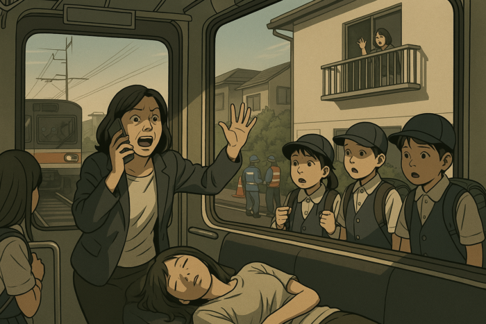 線路の継ぎ目を越えたときの揺れとは違う、鈍く、下から突き上げるような感触だった。次の瞬間、電車が急停車した。吊り革が一斉に揺れ、何人かが声を上げた。