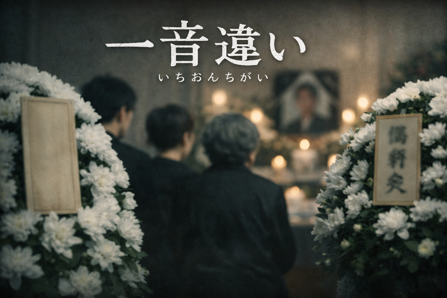 白菊の花輪がいくつも並ぶ中で、中央に置かれている名札と、端に追いやられている名札。その配置に違和感があったらしい。