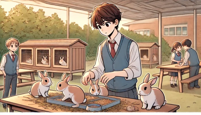 数日後、今度はウサギが殺された。彫刻刀やコンパスで刺されていたという。校内は蜂の巣を突いたような騒ぎになり、報道の車が並んだ。いつの間にか「鶏を殺した奴が犯人だ」という噂が広まり、私の名は口にされずとも、廊下の視線が全て突き刺さってくるのを感じた。