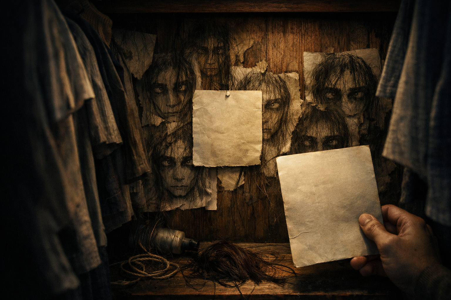 それでも、夜になると、クローゼットの奥が気になる。板は確かに新しい。だが、服をかき分けると、奥からかすかな匂いがする。紙と糊と、湿った髪の匂い。