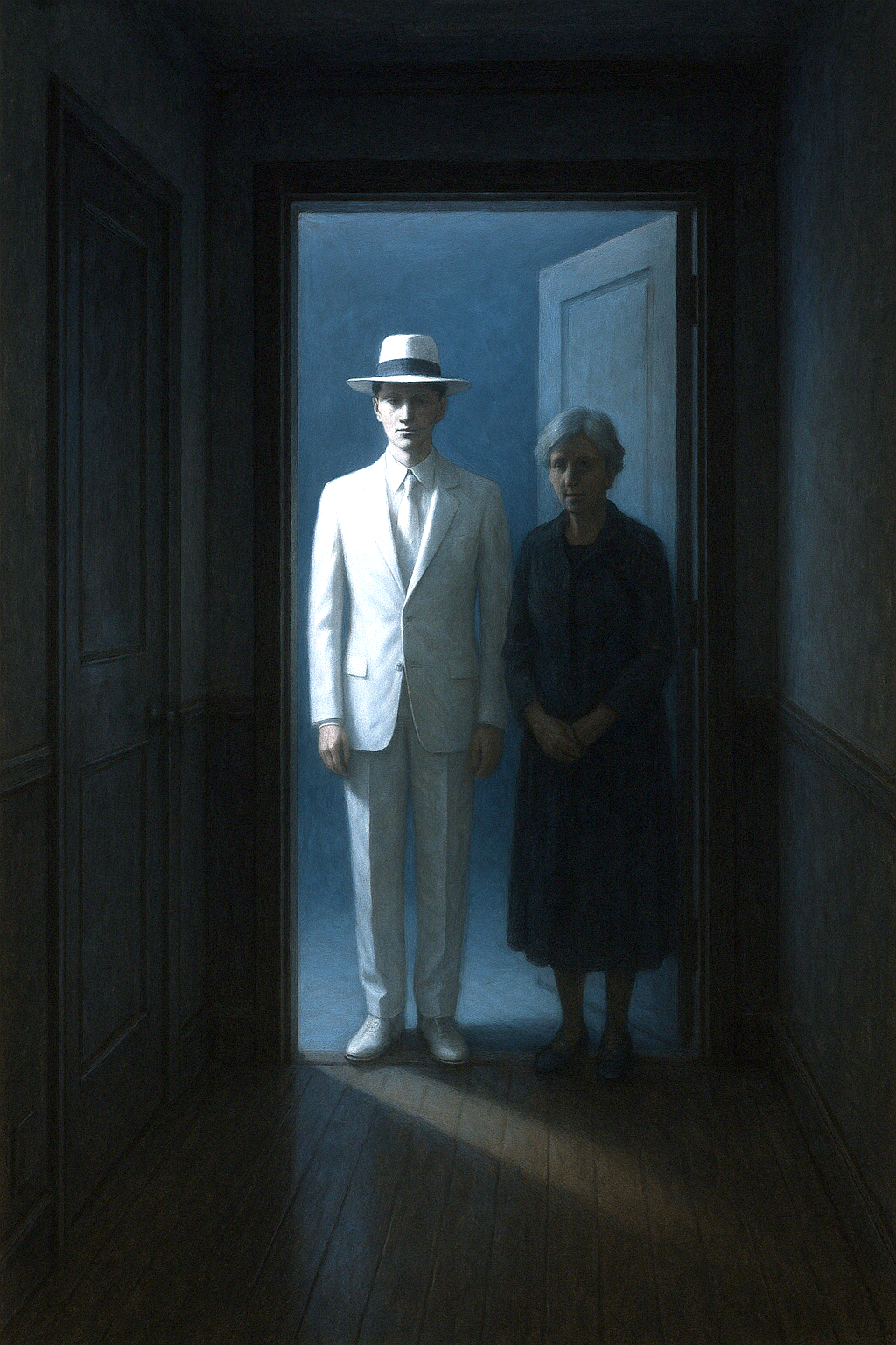そこに立っていたのは、真っ白な帽子とスーツに身を包んだ若い男と、無言のままの祖母だった。