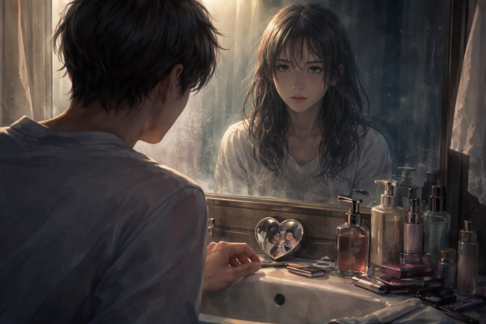その夜、洗面所の鏡を見ていると、ふと視線がずれた。鏡の中のわたしが、一瞬だけ瞬きをしなかった気がした。