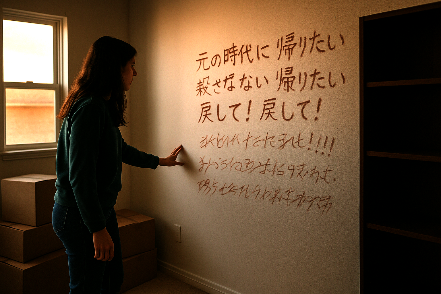 引っ越し先の壁は白く、静かだ。だが、本棚を置く位置を決めるたび、あの文字が浮かび上がる気がして落ち着かない。