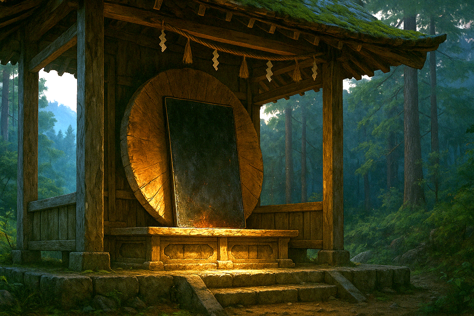 田舎の神社で見つけた、直径一メートル半ほどの木の蓋。