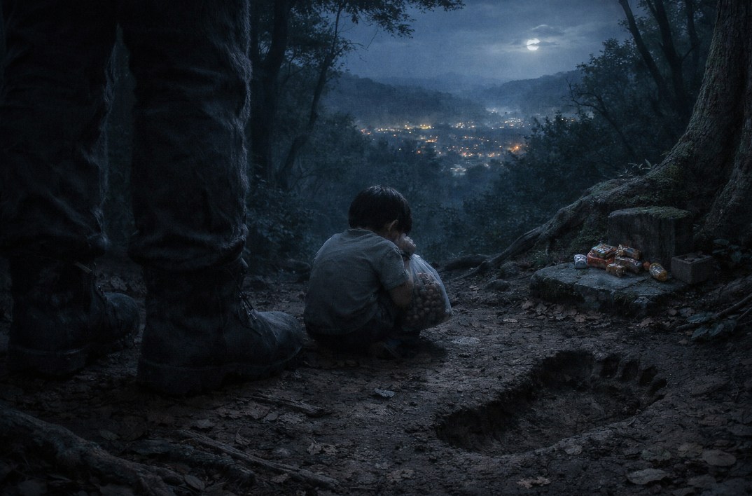 ある日、供えたはずの飴がそのまま残っているのに気づいた。封も切られていない。だが、その横の土には、子供のものではない深い足跡が一つだけ残っていた。行き先は分からず、途中で不自然に消えていた。