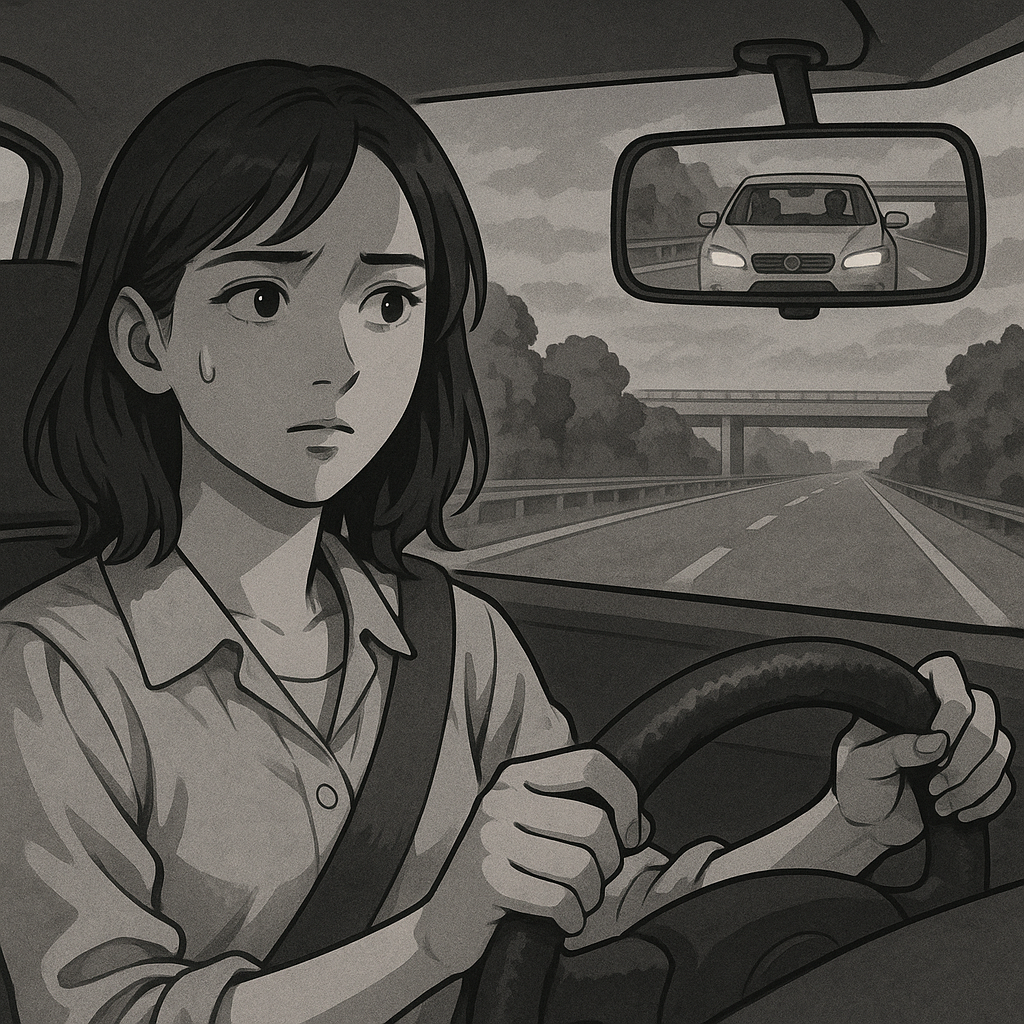 バックミラーには、銀のワゴン車が高速道路の本線をそのまま走り抜けていく姿が映り、私は深く息を吸った。