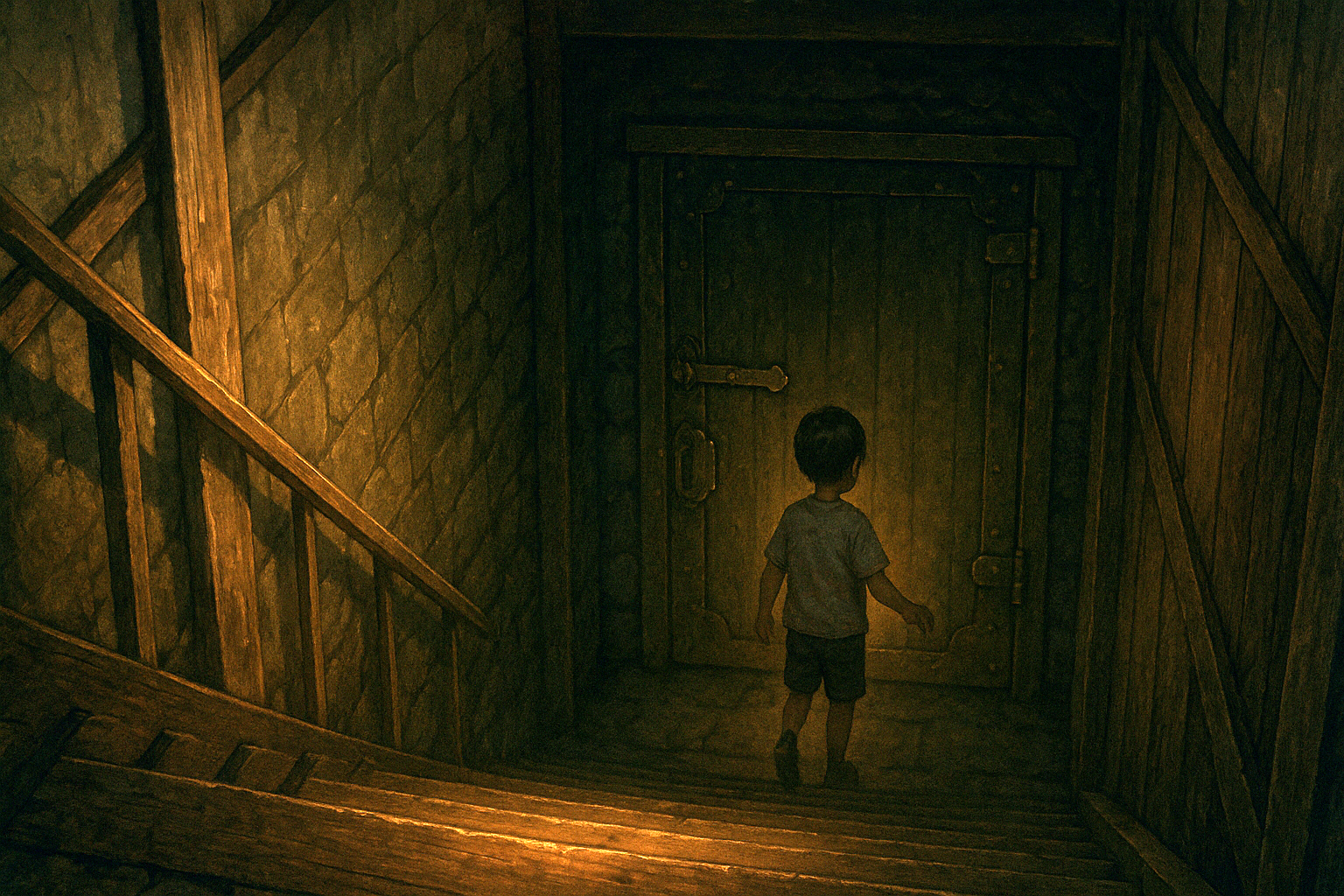 「早く降りてこいよ」と言う声は、自分でもわざとらしいほど強がって聞こえた。弟は泣きそうになりながらも階段を下りてきた。二人して扉の前に立ったが、しばらく言葉が出なかった。子供ながらに「ここは開けてはいけない」と直感していたのだと思う。