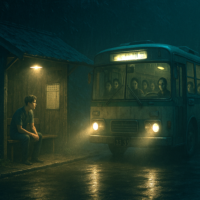 真っ暗な竹林の中で、男の子がぽつんと立っている。